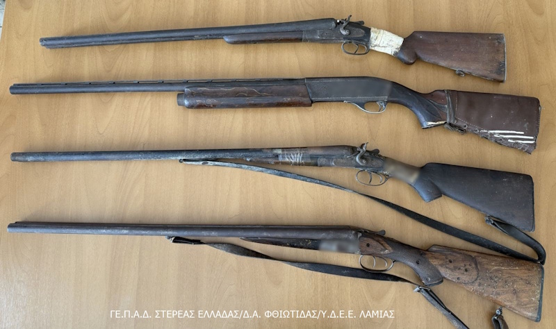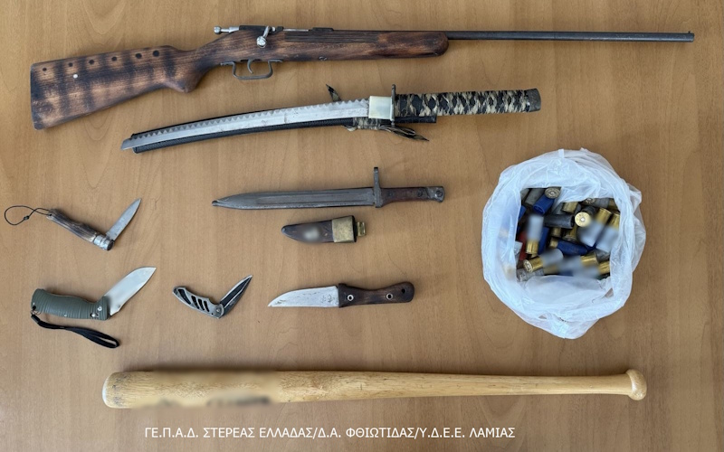 Κατασχέθηκαν ακόμη κυνηγετικά όπλα, περίστροφο, πιστόλι κρότου, πιστόλι replica, σπαθί, μαχαίρια, ξιφολόγχες, μεταλλικές ράβδοι, πληθώρα φυσιγγίων, -6- οχήματα κ.α.