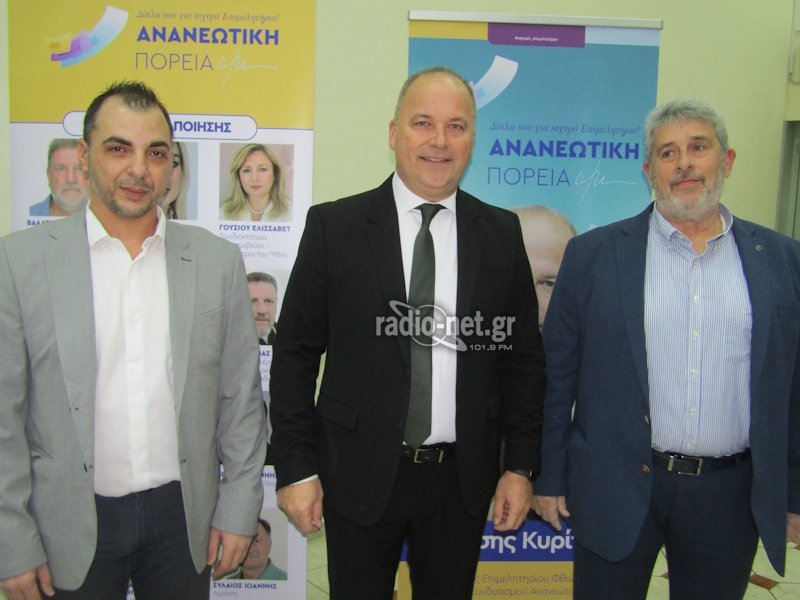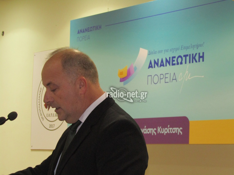 Τη Δευτέρα 25 Νοεμβρίου, στις 7: 00 το απόγευμα, πραγματοποιήθηκε στη Λαμία η κεντρική εκδήλωση παρουσίασης του συνδυασμού “Ανανεωτική Πορεία” με επικεφαλής τον πρόεδρο του ΕΒΕ και εκ νέου υποψήφιο, Θανάση Κυρίτση, στην αίθουσα του Εργατοϋπαλληλικού Κέντρου, στην πλατεία Διάκου.