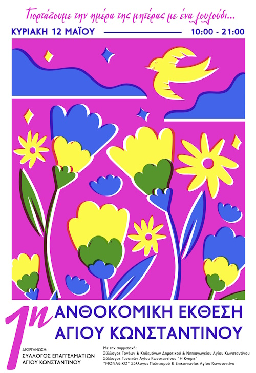 Έρχεται η 1η Ανθοκομική Έκθεση Αγίου Κωνσταντίνου την Κυριακή 12 Μαΐου – Γιορτάζουμε την ημέρα της μητέρας με ένα λουλούδι…