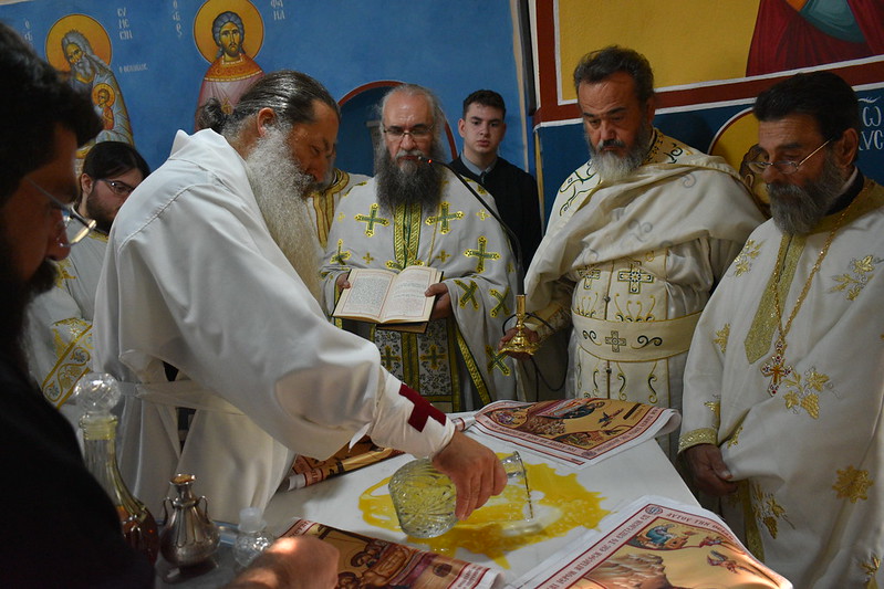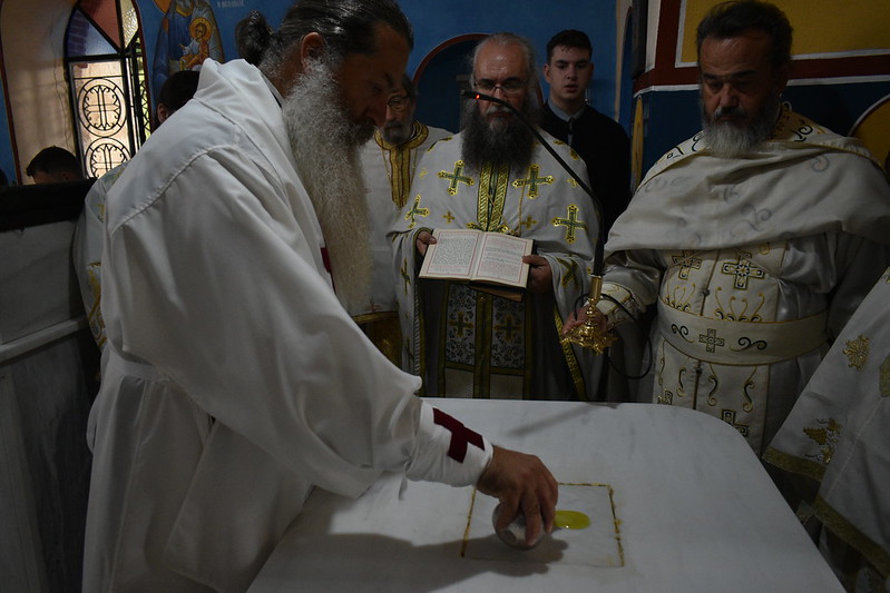 Θεία Λειτουργία, επί της νεοεγκαινιασθείσης Αγίας Τραπέζης.