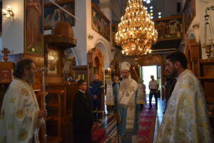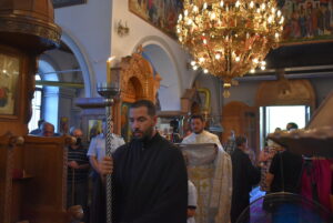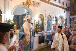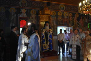 Ανήμερα της Εορτής της Κοιμήσεως της Θεοτόκου ο Σεβασμιώτατος ιερούργησε στον ομώνυμο Ιερό Ναό στο όμορφο Παλαιοχώρι Δωριέων του Δήμου Αμφίκλειας, μία από τις δύο νέες ενορίες της Ιεράς Μητροπόλεως Φθιώτιδος μετά την προσάρτησή τους από την Μητρόπολη Φωκίδος.