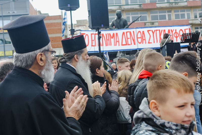 Και η Μητρόπολή μας ασφαλώς όπως πάντοτε συμμετέχει με την πνευματική της παρουσία, με την ζωντανή της παρουσία, συμμετέχει σε κάθε μορφή έκφρασης αυτού του παλλαϊκού ιερού μνημοσύνου, το οποίο τελείται από την Αγία Τράπεζα μέχρι το τελευταίο πεζοδρόμιο, το τελευταίο σοκάκι, τη τελευταία πλατεία, το τελευταίο μονοπάτι σε όλη την Ελλάδα και όχι μόνο.