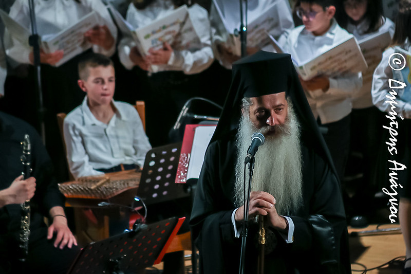 «Η Ιερά Σύνοδος της Εκκλησίας της Ελλάδος έχει αφιερώσει τη φετινή χρονιά στη συμπλήρωση 1700 ετών από τη σύγκληση της Α’ εν Νικαία Οικουμενικής Συνόδου και μάλιστα σε πρόσφατη εγκύκλιό Της μας προέτρεψε τους Σεβασμιωτάτους Μητροπολίτες όλης της επικράτειας να πραγματοποιήσουμε εκδηλώσεις, αφιερώματα, αλλά και να δώσουμε την ευκαιρία σε μικρούς και μεγάλους να προσεγγίσουν αυτό το σημαντικό γεγονός για τη ζωή της Εκκλησίας μας. Σήμερα εμείς είχαμε την ευκαιρία να μας μυσταγωγήσουν στην Α’ Οικουμενική Σύνοδο, στον Συνοδικό Θεσμό, στην Θεολογία των Συνόδων της Εκκλησίας μας, τα παιδιά μας, να μας διδάξουν τα παιδιά μας! Αυτό γευτήκαμε απόψε με αυτή την εκδήλωση, η οποία υπήρξε καρπός συλλογικής προσπάθειας και σύνθεσης δυνάμεων, σύνθεσης γνώσεων και κυρίως σύνθεσης διαθέσεων, και μας προσέφερε αυτήν τη δυνατότητα να μας μιλήσουν με αγάπη τα παιδιά για το Μυστήριο της Εκκλησίας, για το Μέγα Μυστήριο της Ευσεβείας, για το Μυστήριο της Α’ Οικουμενικής Συνόδου.