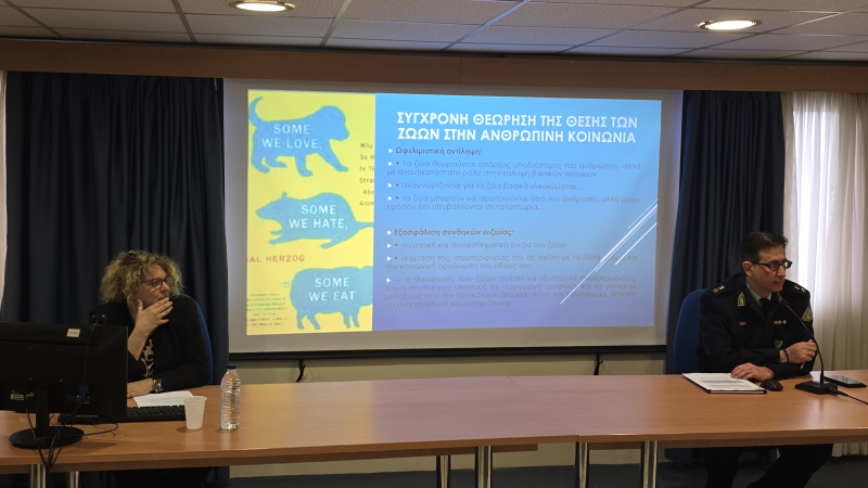 την κα Ελένη Κίττα, Προϊσταμένη της Τμήματος Κτηνιατρικής Π.Ε. Φθιώτιδας της Διεύθυνσης Αγροτικής Οικονομίας και Κτηνιατρικής, με θέμα: «Η αξία της Κτηνιατροδικαστικής σε περιπτώσεις υποψίας κακοποίησης ζώων»,