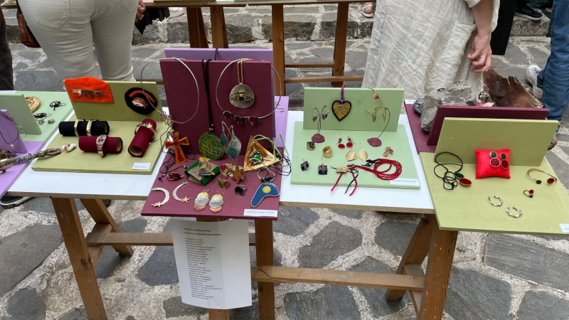 Στο υπαίθριο εικαστικό μωσαϊκό με την έμπνευση και την καθοδήγηση της Καλλιτεχνικής Διευθύντριας των Εικαστικών Εργαστηρίων Σοφίας Βλαχογιάννη και των εκπαιδευτικών, οι μαθητές από τα τμήματα ενηλίκων, ζωγραφικής, αγιογραφίας, πλεκτικής, κοσμήματος από μέταλλα και ημιπολύτιμους λίθους, μικτών τεχνικών – decoupage, δημιουργίες με δέρμα, μόδα και ανακύκλωση, εργασίες από το τμήμα προετοιμασίας για την Ανωτάτη Σχολή Καλών Τεχνών (ΑΣΚΤ) καθώς και από τα παιδικά/εφηβικά τμήματα comics, ζωγραφικής, κατασκευών, πηλοπλαστικής, τέχνη & τεχνικές, «αποτύπωσαν» τις απεριόριστες ικανότητές τους στο δημιουργικό τομέα.