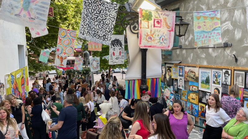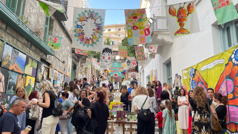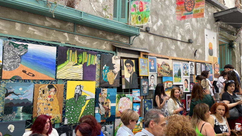 Στο υπαίθριο εικαστικό μωσαϊκό με την έμπνευση και την καθοδήγηση της Καλλιτεχνικής Διευθύντριας των Εικαστικών Εργαστηρίων Σοφίας Βλαχογιάννη και των εκπαιδευτικών, οι μαθητές από τα τμήματα ενηλίκων, ζωγραφικής, αγιογραφίας, πλεκτικής, κοσμήματος από μέταλλα και ημιπολύτιμους λίθους, μικτών τεχνικών – decoupage, δημιουργίες με δέρμα, μόδα και ανακύκλωση, εργασίες από το τμήμα προετοιμασίας για την Ανωτάτη Σχολή Καλών Τεχνών (ΑΣΚΤ) καθώς και από τα παιδικά/εφηβικά τμήματα comics, ζωγραφικής, κατασκευών, πηλοπλαστικής, τέχνη & τεχνικές, «αποτύπωσαν» τις απεριόριστες ικανότητές τους στο δημιουργικό τομέα.
