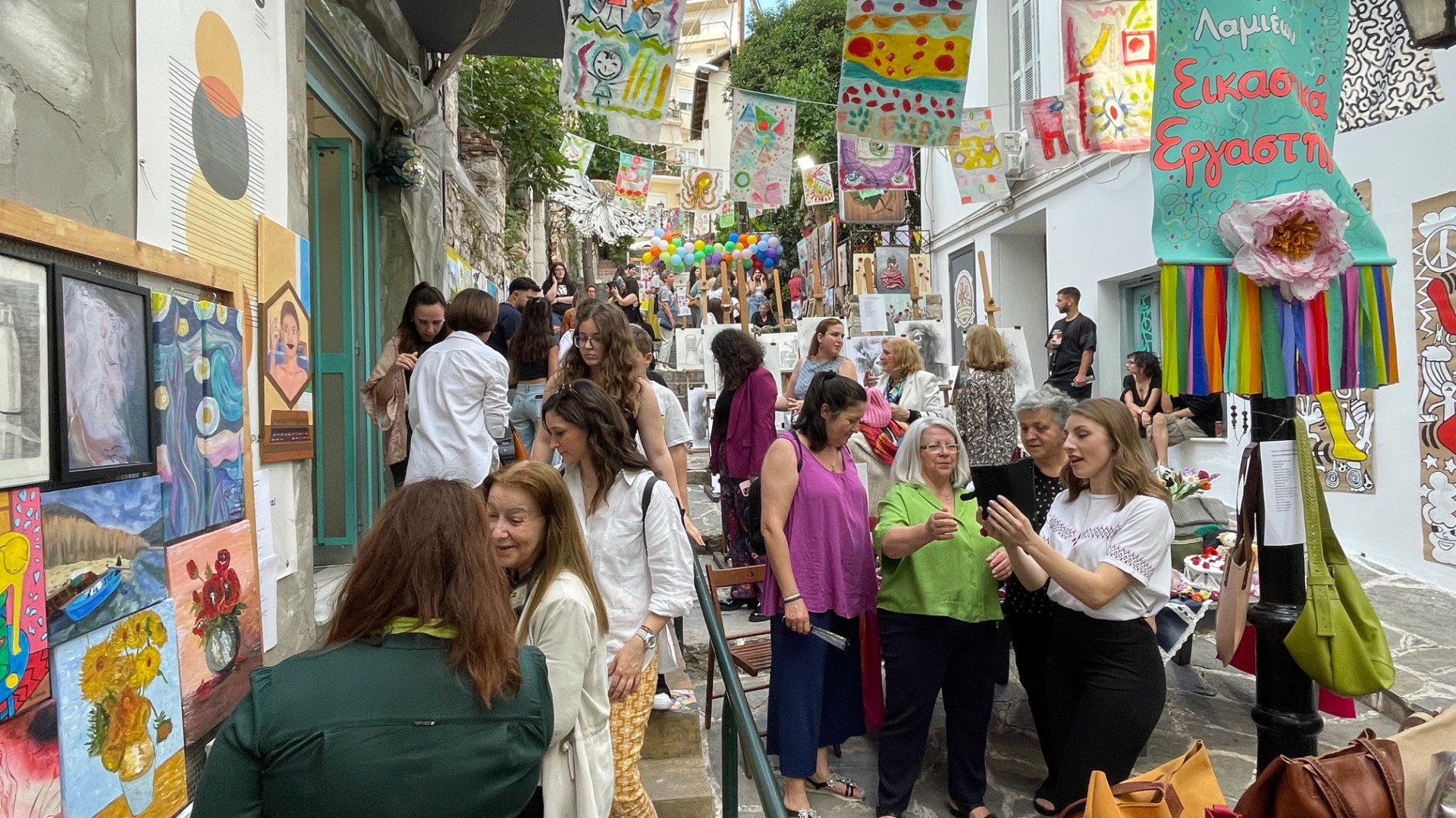 Με ένα εντυπωσιακό, καλλιτεχνικό «αποχαιρετισμό», στα «σκαλάκια» της πλατείας Λαού, μαθητές και δάσκαλοι των Εικαστικών Εργαστηρίων του Δήμου Λαμιέων, ολοκλήρωσαν τη φετινή σχολική χρονιά με μεγάλη επιτυχία, διοργανώνοντας σε ένα ακόμη εκπαιδευτικό φινάλε την ετήσια υπαίθρια έκθεση, παρουσιάζοντας μέσα από τις δημιουργίες τη σπουδαία δουλειά που γίνεται.