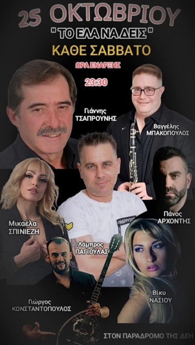 Το βράδυ του Σαββάτου 25 Οκτωβρίου 2025  στο ”Έλα να δεις” στο 1ο χλμ Λαμίας-Αθηνών, στον παράδρομο της ΔΕΗ διοργανώνει μουσική βραδιά με λαϊκή και δημοτική μουσική.