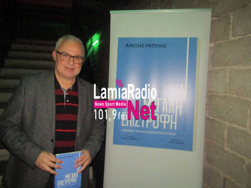 Στη Λαμία βρέθηκε την Παρασκευή 21/11, ο πρώην προϊστάμενος του Οικονομικού Γραφείου του πρωθυπουργού, Αλέξη Πατέλης, για την παρουσίαση του βιβλίου του “«Η Μεγάλη Επιστροφή: Ο δρόμος για την αξιοπιστία της Ελλάδας. Η παρουσίαση έγινε στο The Blind Pig, Λυκούργου 4, στη Λαμία, με ομιλητές τους Χρήστο Σταϊκούρα βουλευτή ΝΔ Φθιώτιδας και Δημήτρη Κωνσταντόπουλο, δημοσιογράφο του lamiareport.gr