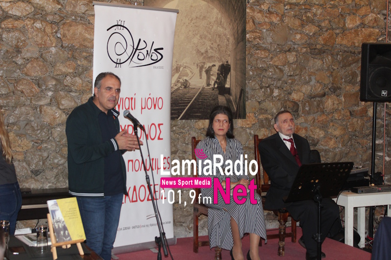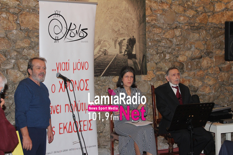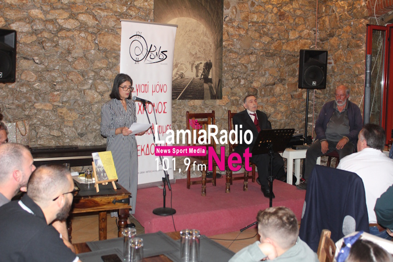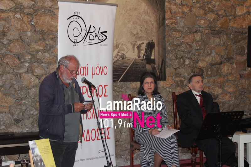 Χαιρετισμό στην εκδήλωση απηύθυναν ο Γιάννης Πάτρας πρόεδρος των Συνταξιούχων ΟΣΕ Φθιώτιδας καθώς και μέλη αυτών, η Σοφία Ανεστοπούλου πρόεδρος ΕΚΠΕΦ, ο Γιώργος Οικονόμου πρόεδρος του Εργατοϋπαλληλικού Κέντρου Λαμίας και η ποιήτρια – εκδότρια από τις Χρόνος Εκδόσεις, Κική Νικοπούλου.