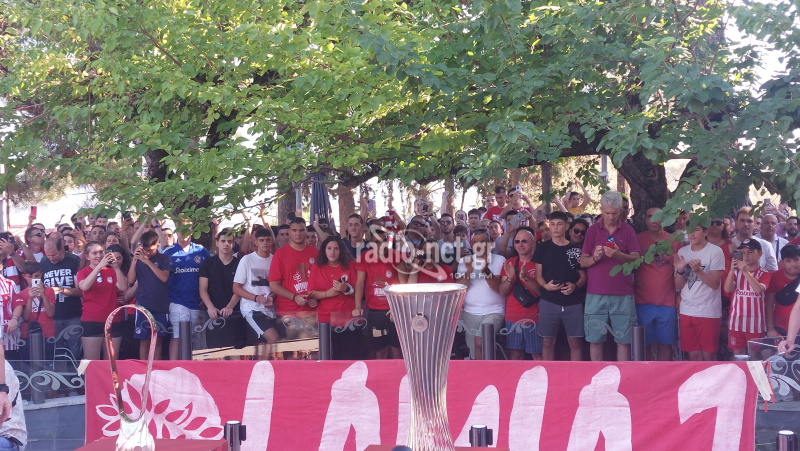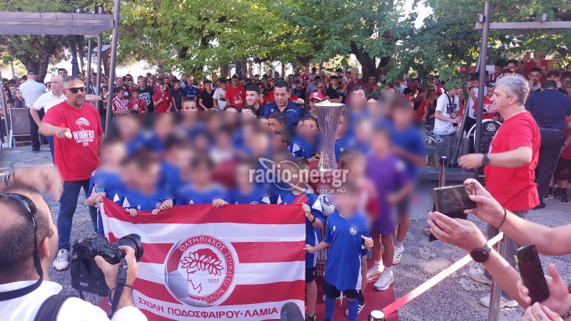 Ο κόσμος έβγαλε φωτογραφίες και θαύμασε τα κύπελλα των Conference League και UEFA Youth League. Παρά τις υψηλές θερμοκρασίες και τη ζέστη πλήθος φίλων του Ολυμπιακού από τη Λαμία, μικροί και μεγάλοι έσπευσαν στην όμορφη ”ερυθρόλευκη΄΄ γιορτή που θα τους μείνει αξέχαστη.