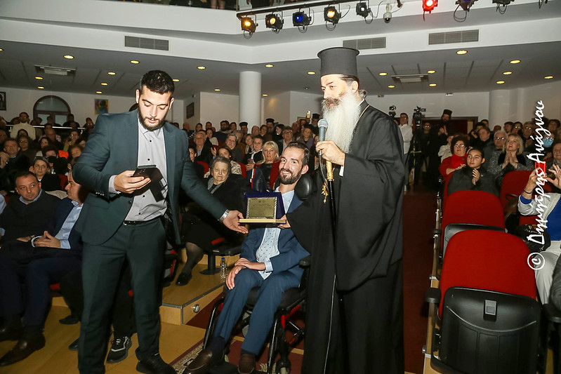 Στην εκδήλωση παραβρέθηκε και ο πρ. ευρωβουλευτής και ψυχίατρος κ. Στυλιανός Κυμπουρόπουλος ο οποίος τιμήθηκε από τον Σεβασμιώτατο Μητροπολίτη μας για την προσφορά τεχνικού – ηλεκτρονικού εξοπλισμού στο Ωδείο μας.