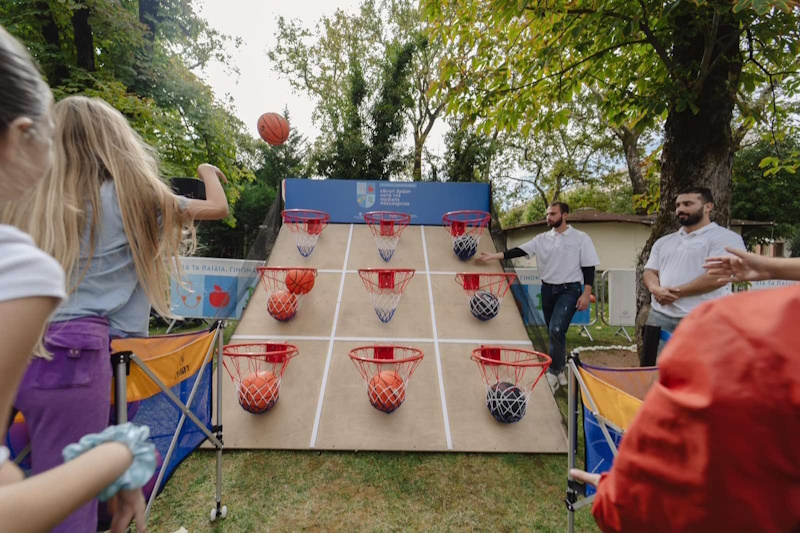 12.30 – 14.00 Δραστηριότητες (πινγκ πονγκ, air hockey, τρίλιζα μπάσκετ, ποδηλατοδρομίες, πίστα εμποδίων, τοίχοι αναρρίχησης, σκορ 4 μπάσκετ).