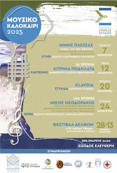 “Μουσικό Καλοκαίρι 2025” από την Περιφέρεια Στερεάς Ελλάδας
