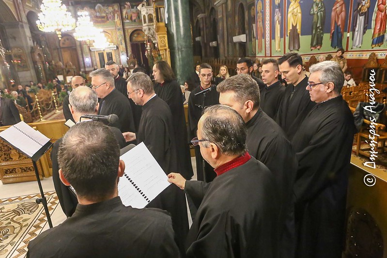 Στην Ακολουθία της Τριθέκτης χοροστάτησε ο Σεβασμιώτατος Μητροπολίτης Φθιώτιδος κ. Συμεών, ενώ τους ύμνους απέδωσαν με αρτιότητα και μεγαλοπρέπεια πολυμελείς Βυζαντινοί Χοροί, του Ωδείου της Ιεράς Μητροπόλεως Φθιώτιδος «Γερμανός ο Μελωδός» υπό τον Διευθυντή και Πρωτοψάλτη του Ιερού Μητροπολιτικού Ναού Ευαγγελισμού της Θεοτόκου Λαμίας Δρ. κ. Ανδρέα Ιωακείμ και της Σχολής Βυζαντινής Μουσικής της Ιεράς Μητροπόλεως Κίτρους, Κατερίνης και Πλαταμώνος «Ο Όσιος Διονύσιος ο εν Ολύμπω» υπό τον Πρωτοψάλτη κ. Δημήτριο Μανούση, τη συμμετοχή του Διευθυντού της Σχολής Βυζαντινής Μουσικής της Ιεράς Μητροπόλεως Θεσσαλιώτιδος και Φαναριοφερσάλων κ. Ηλία Καπέλα και πατέρων εκ της Ιεράς Μητροπόλεως, καθηγητών της Σχολής.