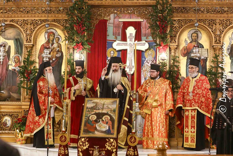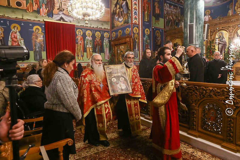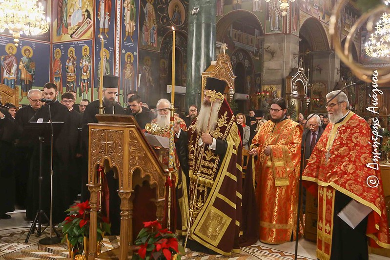 Ο Σεβασμιώτατος κ. Συμεών κατά την εκκλησιαστική τάξη απήγγειλε ενώπιον της Ιεράς Εικόνος της Γεννήσεως του Χριστού τους Οίκους εκ του Κοντακίου, ποίημα του Αγίου Ρωμανού του Μελωδού, ενώ στον λόγο του, μεταξύ των άλλων, χαρακτηριστικά σημείωσε: