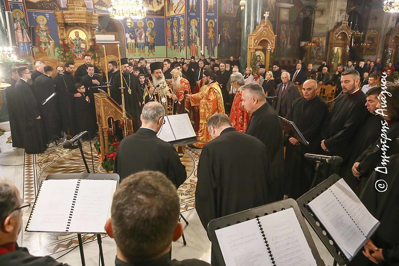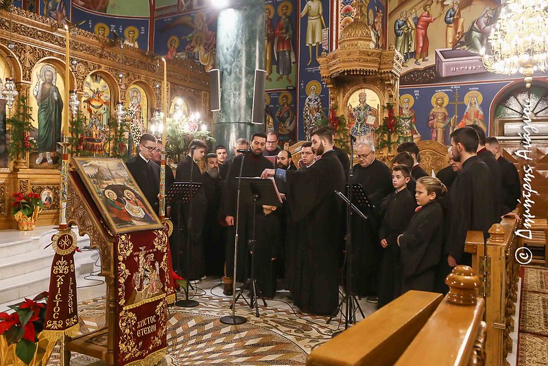 Σε κλίμα μυσταγωγίας και κατάνυξης τελέσθηκε απόψε, ενόψει της μεγάλης Εορτής των Χριστουγέννων, η Ασματική Ακολουθία της Τριθέκτης του Βυζαντινού Ασματικού Τυπικού και το Κοντάκιο των Χριστουγέννων, στον Ιερό Μητροπολιτικό και Καθεδρικό Ναό Ευαγγελισμού της Θεοτόκου Λαμίας σε απευθείας μετάδοση από τον Ραδιοφωνικό Σταθμό της Ιεράς Μητροπόλεως (89,4 Fm) και με την παρουσία υψηλών εκπροσώπων της Περιφέρειας Στερεάς Ελλάδος και του Δήμου Λαμιέων.