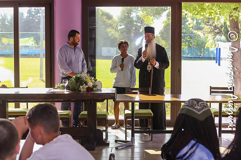Η συγκυρία μάλιστα της επισκέψεως αυτής ήταν ιδιαίτερη καθώς ήταν η τελευταία μέρα παραμονής της πρώτης ομάδας παιδιών από την εμπόλεμη ομόδοξη χώρα, την Ουκρανία, αλλά και της ταυτόχρονης παρουσίας των παιδιών από την Αφρική, την Ζάμπια και την Μοζαμβίκη, που φιλοξενούνται μόνιμα στο Κατασκηνωτικό Κέντρο συνεχίζοντας παράλληλα και το εντατικό πρόγραμμα εκμάθησης της ελληνικής γλώσσας.