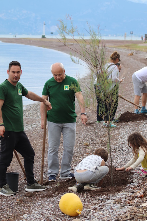 Μικροί μεγάλοι, γίναμε μια παρέα, ένας κύκλος, ανταλλάξαμε απόψεις και προβληματισμούς, τονίσαμε τη σημασία της ομάδας, της συνέργειας για τις δράσεις μας και όταν η βροχή σταμάτησε πεζοπορήσαμε μέχρι την περιοχή της παραλίας του Φάρου Ραχών όπου φυτέψαμε αλμυρίκια.