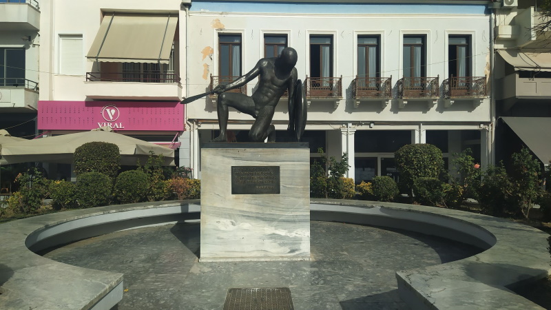 δρόμους νεοκλασικές οικοδομές και το άγαλμα το Λεωνίδα να δεσπόζει μπροστά στο
