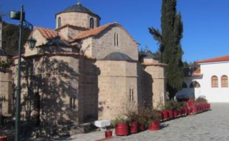 Ο ναός είναι αφιερωμένος στην Παναγία και τα παρεκκλήσια στη Μεταμόρφωση, στους Αγίους Αποστόλους και στους Αγίους Χαράλαμπο και Ιωάννη. Η ανέγερση του καθολικού τοποθετείται στον 15ο αι., με πολλές μεταγενέστερες επεμβάσεις. Στο εσωτερικό του σώζεται τοιχογραφικός διάκοσμος που εκτελέστηκε σε τρεις περιόδους: α) στον 16ο-17ο αι., β) στον 18ο και γ) στον 20ο αιώνα.