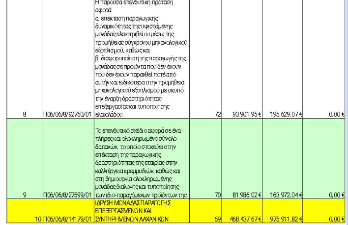 Συνολική επιχορήγηση των επενδυτικών σχεδίων ύψους 2.332.504,82 ευρώ.