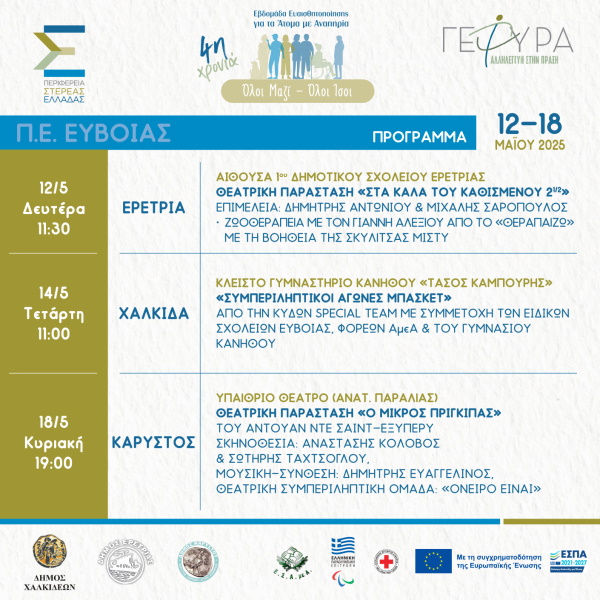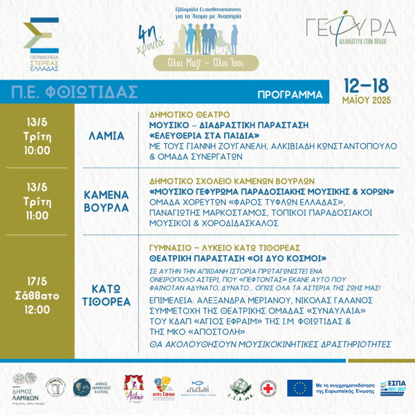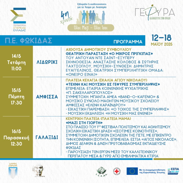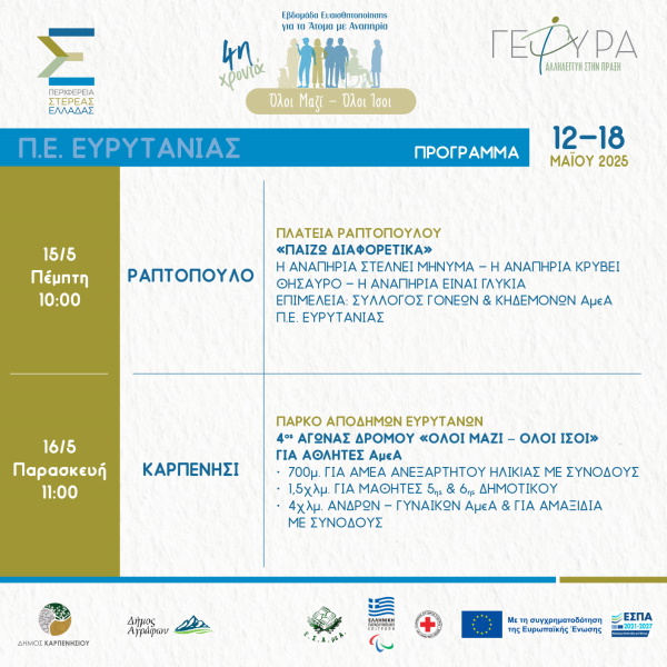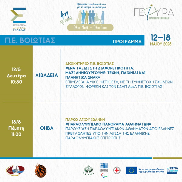 Περιφέρεια Στερεάς Ελλάδας: Παρουσιάστηκε το πρόγραμμα της «4ης Εβδομάδας Ευαισθητοποίησης για Άτομα με Αναπηρία», με σύνθημα: «Όλοι Μαζί – Όλοι Ίσοι» (φωτογραφίες-βίντεο)