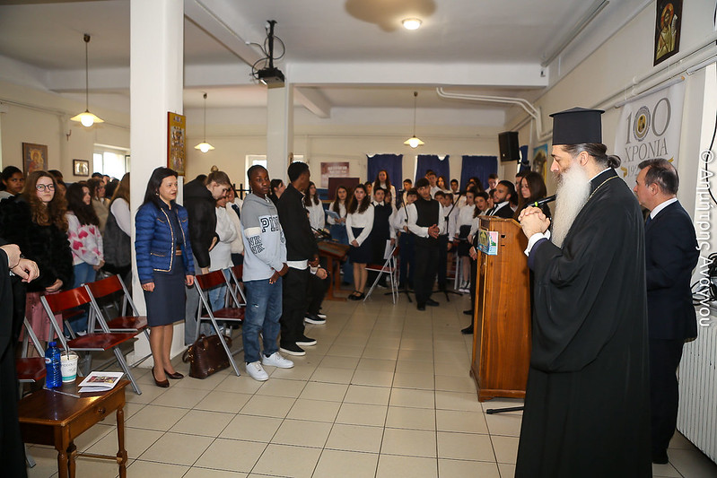 Ακολούθησαν χαιρετισμοί από τους δύο Μητροπολίτες και τον Διευθυντή του Σχολείου, ενώ τα παιδιά έψαλαν σε άπταιστα ελληνικά τον Εθνικό μας Ύμνο.