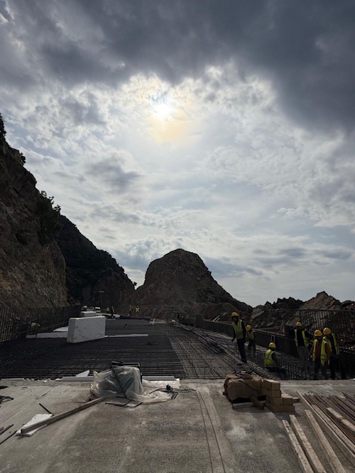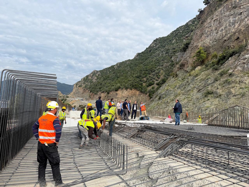 Ολοκληρώθηκαν οι εκσκαφές θεμελίων και βρίσκονται σε πλήρη εξέλιξη οι εργασίες σκυροδέτησης του δεύτερου στεγάστρου προστασίας (μεταξύ χ.θ. 0+867,73 έως 1+007,39) μήκους 140μ. περίπου.