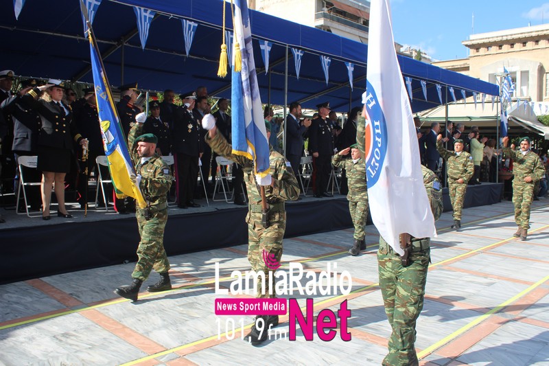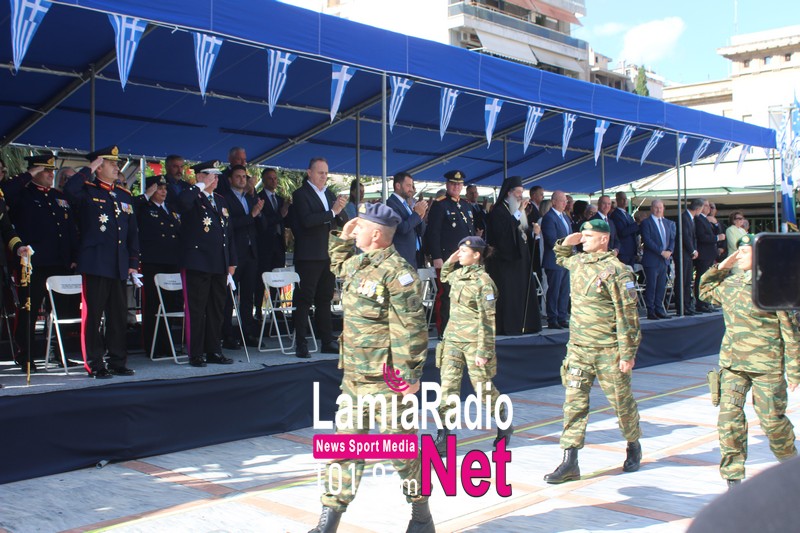 Τίμησαν και φέτος την επέτειο της 28ης Οκτωβρίου στη Λαμία μαθητές, εκπρόσωποι συλλόγων και ένστολοι. Κάτω από πολύ καλές καιρικές συνθήκες πραγματοποιήθηκε η καθιερωμένη παρέλαση με παρουσία πλήθους κόσμου που γέμισε το κέντρο της πόλης. Από νωρίς το πρωί ξεκίνησε ο εορτασμός με χαρμόσυνες κωδωνοκρουσίες όλων των Εκκλησιών. Στον Ιερό Μητροπολιτικό Ναό Ευαγγελισμού της Θεοτόκου, τελέστηκε Πανηγυρικός Όρθρος και Αρχιερατική Θεία Λειτουργία για την εορτή της Αγίας Σκέπης.