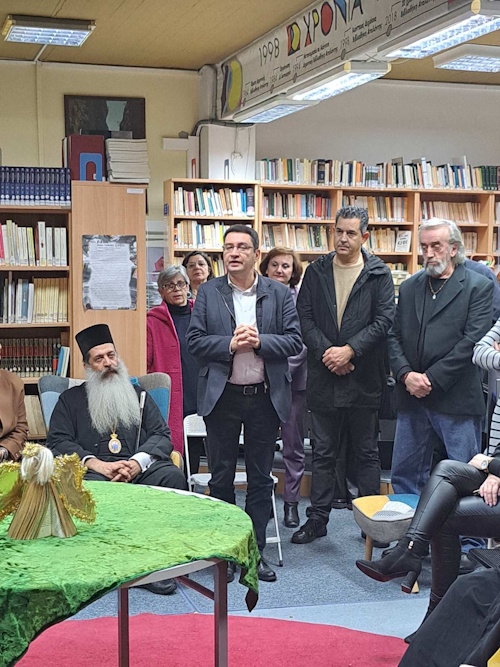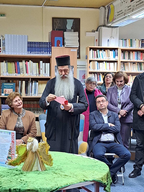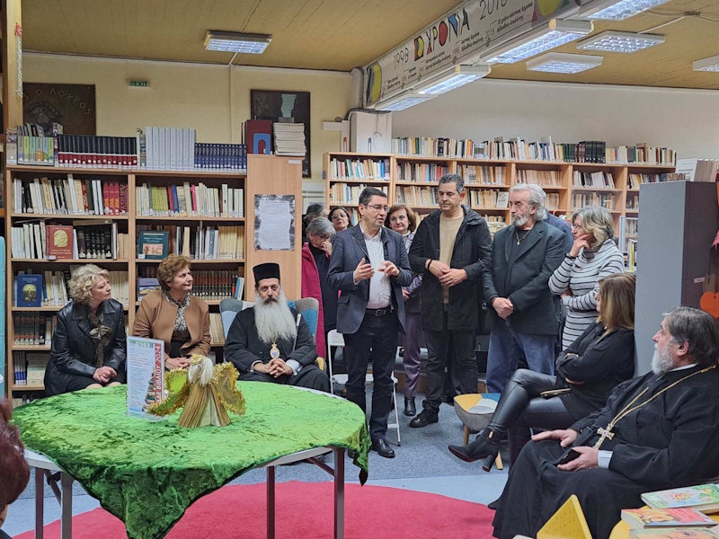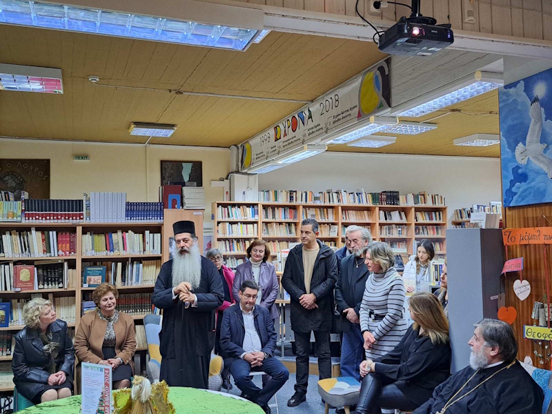 Στον χαιρετισμό του ο Σεβασμιώτατος Πρόεδρος αναφέρθηκε στην διαχρονική αξία του βιβλίου και στη μέγιστη σημασία της Βιβλιοθήκης. Στη συνέχεια μετέφερε τις εντυπώσεις του, από την πρόσφατη επίσκεψή του στην Αίγυπτο μαζί με τον υπουργό Παιδείας κ. Πιερρακάκη, την ασύλληπτη εμπειρία του από την παγκοσμίου φήμης Βιβλιοθήκη της Αλεξάνδρειας, από το Σπίτι-Μουσείο του Αλεξανδρινού ποιητή Κωνσταντίνου Καβάφη και άλλα αξιοθέατα με επίκεντρο το βιβλίο.
