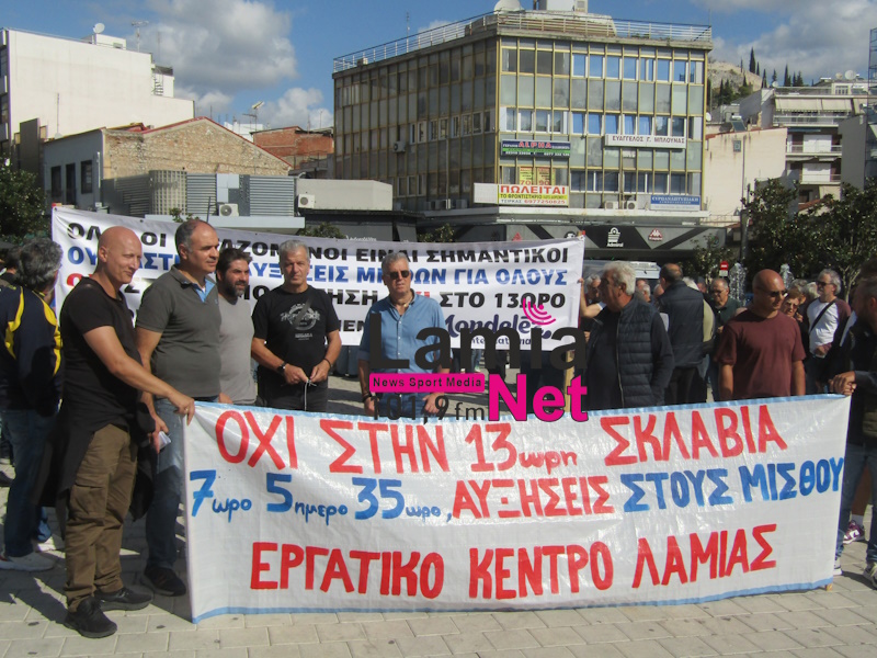 Το Εργατικό Κέντρο Λαμίας συμμετείχε στην Πανελλαδική απεργία της ΓΣΣΕ με μεγάλη συγκέντρωση στην Πλατεία Πάρκου, το πρωί της Τετάρτης (1/10). Οι διαδηλωτές δήλωσαν τη αντίθεσή τους στο νομοσχέδιο της Κυβέρνησης για την επιπλέον εργασία, παρομοιάζοντας το 13ωρο με τον εργασιακό μεσαίωνα. Το ίδιο επεσήμανε και στην κεντρική του ομιλία ο Πρόεδρος του ΕΚΛ Γιώργος Οικονόμου ο οποίος κάλεσε σε συστράτευση τις λαϊκές δυνάμεις απέναντι στην ασυδοσία της εργοδοσίας.